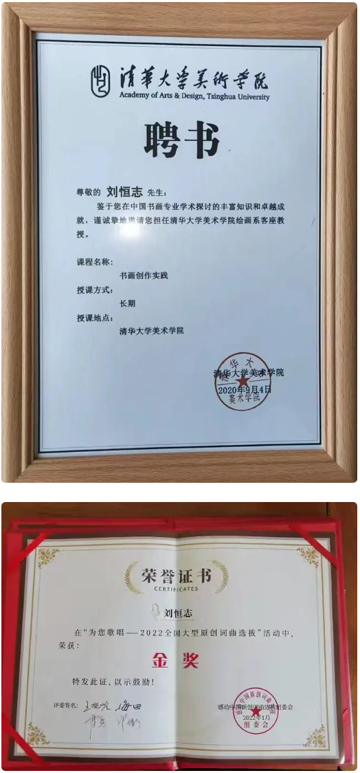 刘恒志,著名文学家,剧作家,诗人,书法家,理论家。教授,研究生导师。全国十大词曲作家,2024首届亚洲国际电影节亚洲杰出编剧奖。国家高级美术师,中国香港美术家协会名誉主席,清华大学美术学院特聘教授,中央美术学院特聘教授,中国书法家协会会员。 全国第九届书法篆刻作品入展并获奖,全国第十届书法篆刻作品入展并获奖。 Liu Hengzhi,A distinguished litterateur, playwright, poet, calligrapher and theorist, he holds the titles of Professor and Graduate Supervisor. He is honored as one of the Top Ten Lyricists and Composers in China, and won the Outstanding Screenwriter Award at the 2024 1st Asian International Film Festival. As a National Senior Artist, he serves as Honorary Chairman of the Hong Kong Artists Association of China. He is also a Distinguished Professor at the Academy of Arts & Design, Tsinghua University and the Central Academy of Fine Arts, as well as a member of the China Calligraphers Association. His works were selected and awarded in both the 9th and 10th National Calligraphy and Seal Carving Exhibitions. 军艺文学美术系毕业留校任教,文学硕士,博士。协助陈汉元创作《话说长江》,后二人再度合作,在中央电视台中国电视剧制作中心大型专题系列片《先锋颂》中,陈汉元为总编导,刘恒志担任总撰稿兼执行总编导,在央视一套黄金时间播出后引起轰动和巨大反响,获中宣部五个一工程奖、全国最佳纪录片特等奖,中央电视台优秀节(剧)目奖等。 《远山》《共和国正在裁军》《大裁军》《欲望号兵车》《威武三国》《球王》获国家图书奖、中宣部五个一工程奖等,大型歌剧舞蹈史诗《炎黄和盟》名列戏剧中国年度最佳作品榜首,《飞夺泸定桥》获中国戏剧优秀剧目奖。 参与策划创作82集电视剧《贞观长歌》及《花木兰传奇》《多情江山》《上官婉儿》《舰在亚丁湾》《粟裕大将》等获中国电视金鹰奖、飞天奖等,京剧《文成公主》《图兰朵》《花木兰》(国家京剧院邓敏主演)获国家文华奖、文华大奖、全国舞台艺术精品工程经典剧目奖等。 袁隆平系列电影、电视剧本《禾下乘凉梦》、《生死攸关——“两系法”风雨中的袁隆平》、《袁隆平》被作为高等艺术院校文学创作示范教材。 担任总撰稿的大型系列专题一《延伸的长城》《时代颂歌》《足迹》《誓言》《火炬与群星》等在央视一套黄金时间播出引起反响,并获中央电视台最佳节(剧)目奖等。 因创作海军新时代军歌《走向深蓝》而成为“走向深蓝”一词发明人,在《感动中国》人民喜爱的艺术家全国听(观)众群众性评选中,凭借《走向深蓝》(霍勇演唱)、《海军蓝》《大海誓言》(吕继宏演唱)、《领航新时代》(刘丹丽演唱)、《撸起袖子加油干》(何沐阳曲、周深等演唱)、《农民父兄》(春雷演唱)、《我们是英雄护航兵》《奔向海洋-海军士官学校校歌》《我们一同走过从前》(康澎曲 董文华演唱)、《战士·界碑·祖国》(于乃久演唱)、《伴你人间天地情》(杜克曲 白雪演唱)、《军旗情》(朱虹演唱)、《更多的时候》《足迹》(楚兴元曲、杨洪基演唱)、《光照四季》(莎光曲 谭晶演唱)、《丽江酒歌》(许镜清曲、阎维文演唱)、粤韵歌曲《领航新时代》(刘恒志作词,陈仲琰、卢华作曲,叶幼琪演唱)、《启航》(万山红演唱)、《永远青春的中华魂》(戴玉强、黄华丽演唱)等,荣获“中国十大词曲作家”称号。 大型主题文艺晚会《五彩天路》《边关四季》《我们的队伍像太阳》获全军文艺汇演一等奖、央视最佳节(剧)目奖等。 中影股份影视人才培训中心(金牌编剧训练营)主讲教授,中国东方演艺集团艺术顾问,上海电影集团影视公司高级顾问、艺术总监,广东粤剧推广协会副主席,海南省书法家协会顾问,武汉大学艺术学院荣誉教授,北京语言大学特聘汉学教授,四川文化艺术学院荣誉院长。 太湖世界文化论坛常务理事,中国红色文化研究会常务理事。 中国音乐金钟奖金奖,中国新诗大奖,全国书法大展一等奖,全国兰亭序临摩大赛一等奖(大学时代)获得者,《美的真理》美学论文集获艺术学院奖特等奖 戏曲电影京剧《文成公主》《图兰朵》。 2025年分别发行:邮票上的中国传统文化《国礼艺术名家——刘恒志》邮票、《国之瑰宝》邮票、《联合国成立80周年》邮票、《巳巳如意》邮票。
