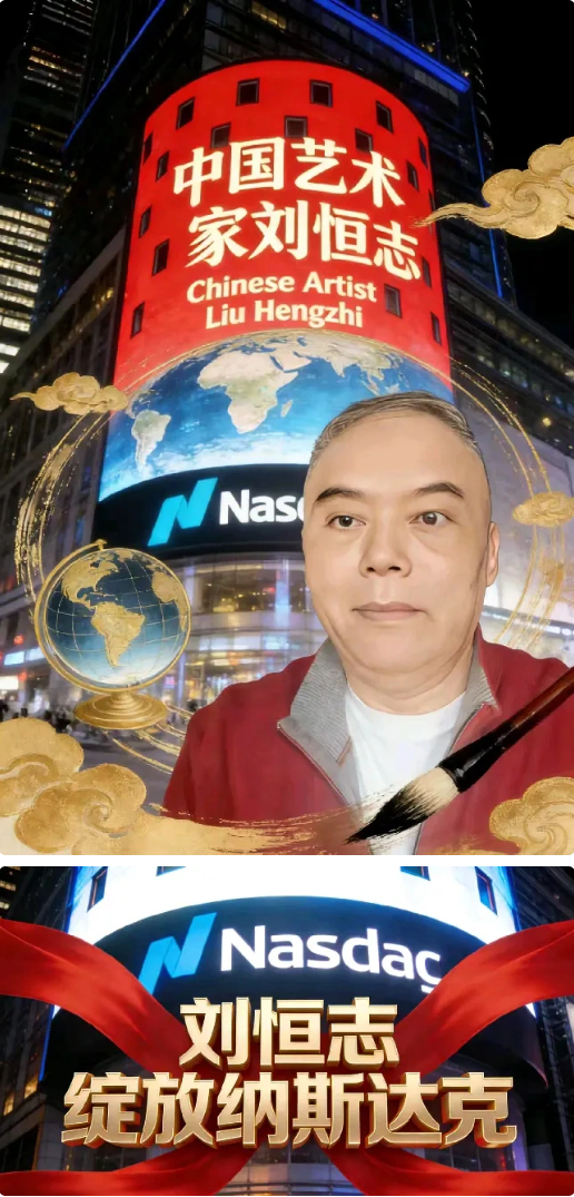 刘恒志—纳斯达克之巅·东方艺术之美震撼世界视野 华夏巨擘 2025-12-23 纳斯达克大屏点亮纽约夜空,东方艺术神韵跨越山海。刘恒志深耕东方美学,以笔墨为媒、文化为魂,熔铸华夏底蕴与当代创新,在传统与现代间构建跨文化艺术对话。 登临纳斯达克之巅,既是其艺术生涯里程碑,亦是东方艺术走向世界的注脚。当作品于世界十字路口绽放,见证的不仅是艺术家的匠心,更是中华文化与全球文明交融的时代图景。 As the Nasdaq screen lights up Times Square’s night, Eastern art’s allure transcends borders. Rooted in Eastern aesthetics, Liu Hengzhi blends Chinese cultural heritage with contemporary innovation via brush and ink, forging cross-cultural artistic dialogue between tradition and modernity. His appearance at Nasdaq is both a milestone in his career and a testament to Eastern art’s global ascent. As his works shine at the world’s crossroads, they embody not only his artistic devotion but also the integration of Chinese and global civilizations.